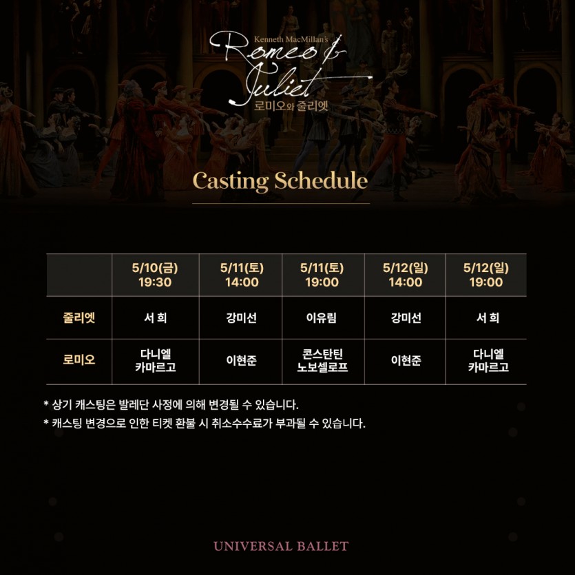 | 유니버설발레단 로미오와 줄리엣 (일부회차 캐스팅 미정) (0) | 2024.03.22 |