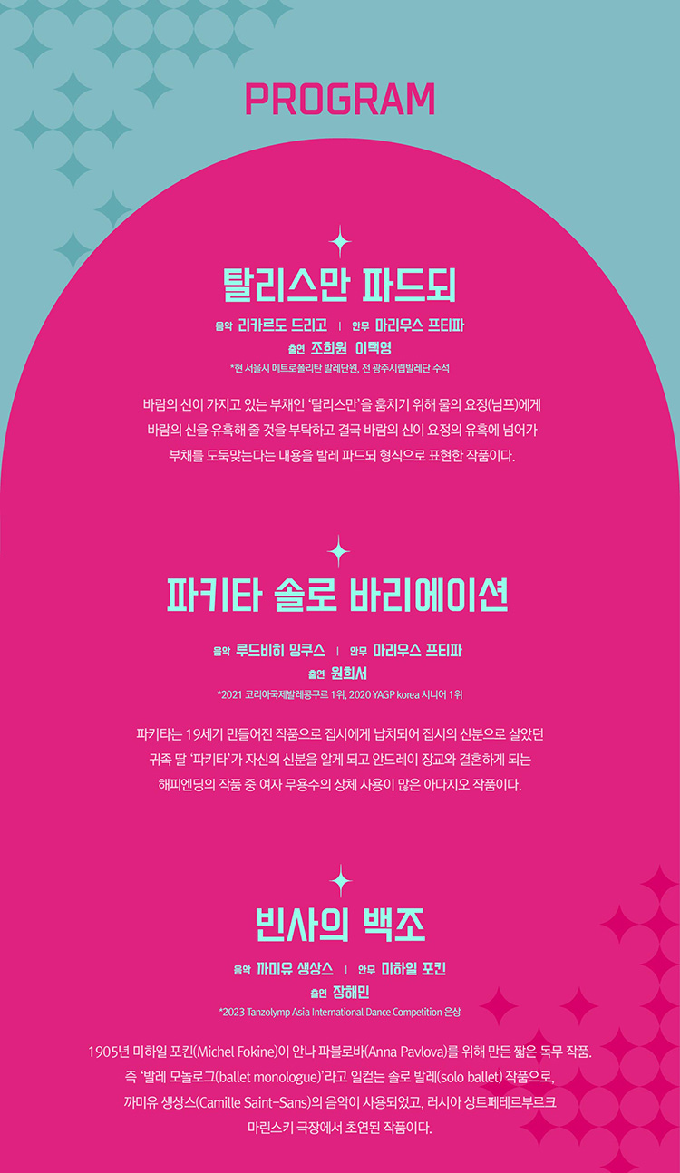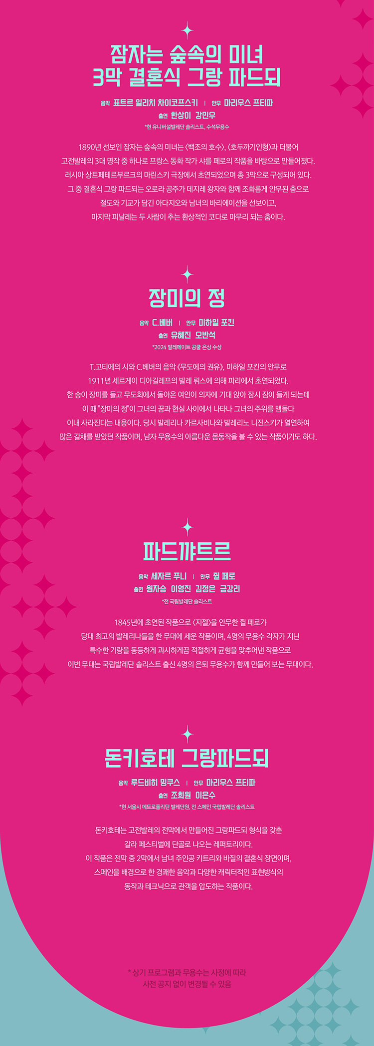 원래 그 전에는 김유진 김태석의 지젤이 프로그램에 있었는데 한상이 강민우의 잠미녀로 캐스팅과 프로그램이 바뀌었다.