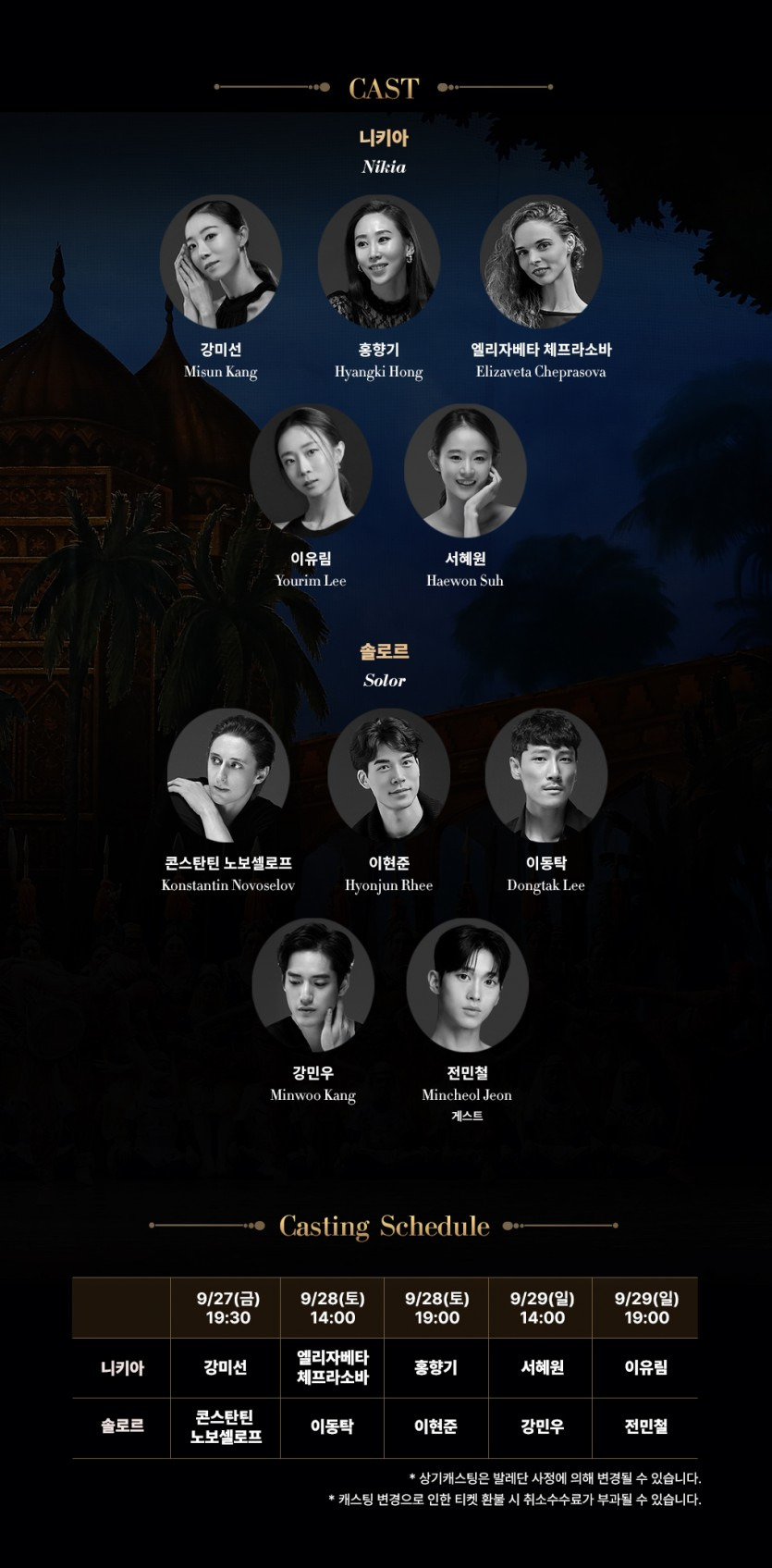 | 니키야 | 강미선 | 엘리자베타 체프라소바 | 홍향기 | 서혜원 | 이유림 |