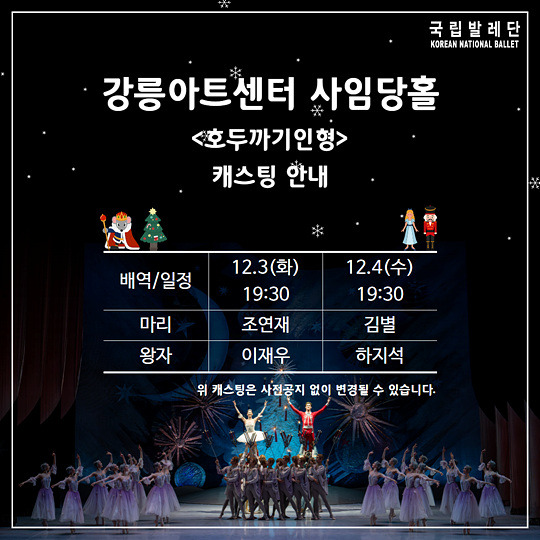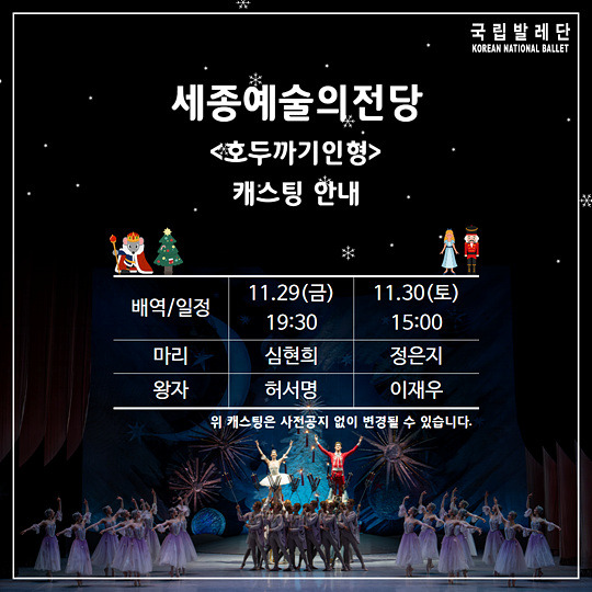 국립발레단 천안,대구,세종,강릉,전주 호두까기인형 캐스팅 안내