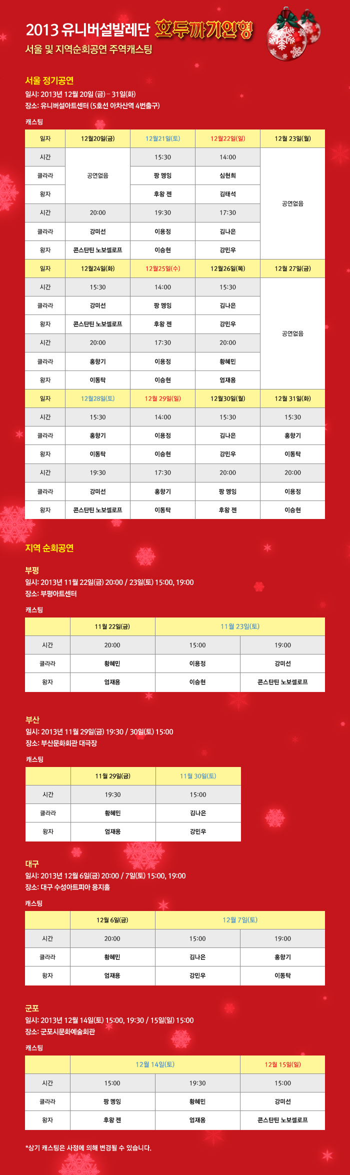 유니버설발레단 <호두까기인형> 세부 캐스팅 공지