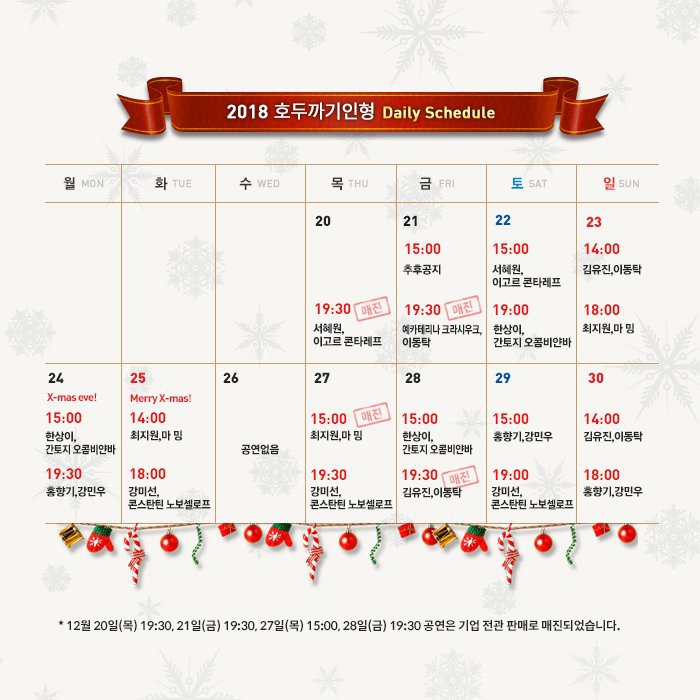 홍향기 무용수의 부상으로 유니버설발레단의 호두까기 인형 캐스팅이 24밤 29낮 30밤이 바뀌었습니다.