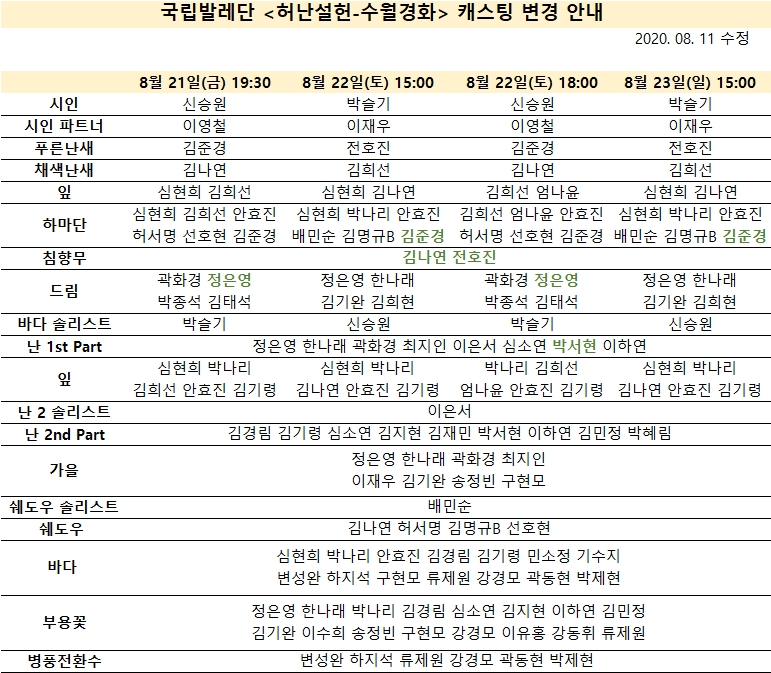 국립발레단 <허난설헌-수월경화> 캐스팅 변경 안내2020-08-11
