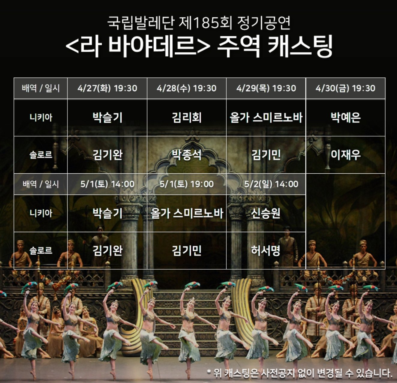 4/29(목) 캐스팅 변경