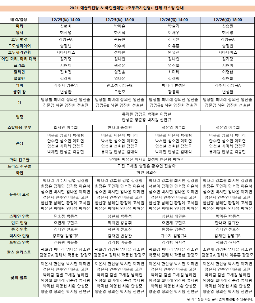 | 2021년 국립발레단 호두까기 인형 캐스팅 (0) | 2021.11.10 |