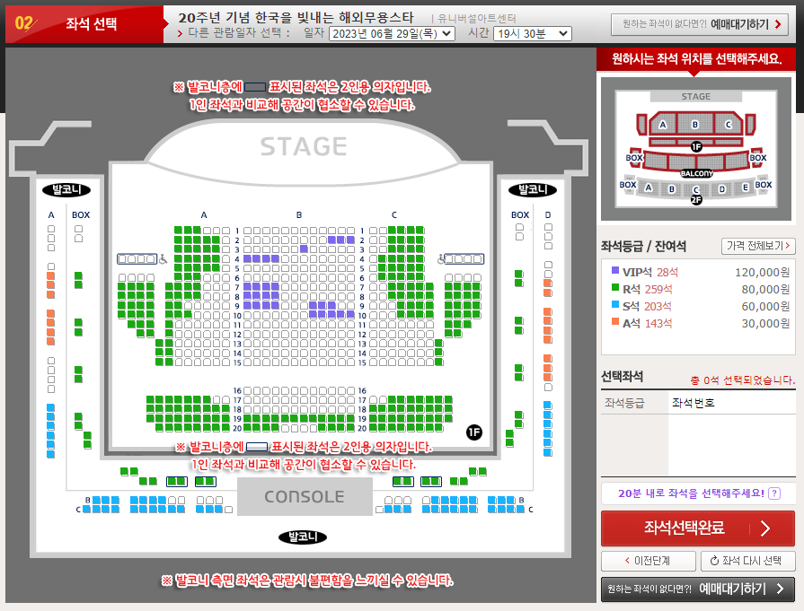 노할인 1층 중블 모두 VIP석, 사블 R석
