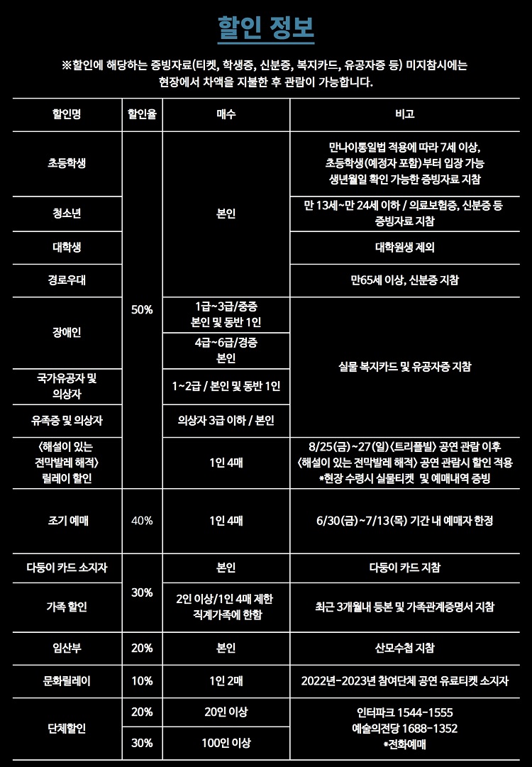 해당 회차를 예매해주신 관객 분들의 너른 양해 부탁드리며, 캐스팅 변경으로 인한 환불은 전액 수수료 없이 진행됨을 알려드립니다.