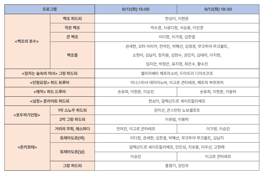 [캐스팅] 천원의 행복 <해설이 있는 스페셜 발레 갈라 with 문훈숙> 상세 캐스팅ㅣ세종문화회관ㅣ9.12 > 공지사항 | 유니버설발레단 (universalballet.com)