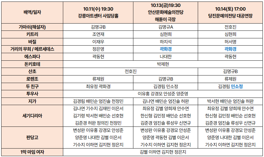 2023 꿈나무 교실 < Fly Higher with KNB_해설이 있는 전막발레 돈키호테 > (강릉, 안산, 당진) 전체 캐스팅 안내 2023-10-10 2023 꿈나무 교실 < Fly Higher with KNB_해설이 있는 전막발레 돈키호테 > 전체 캐스팅