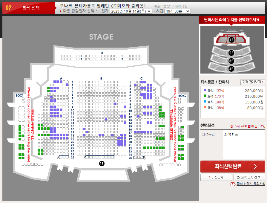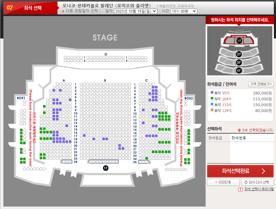 몬테카를로발레단 로미오와 줄리엣 잔여석 현황 (2023.10.04.)