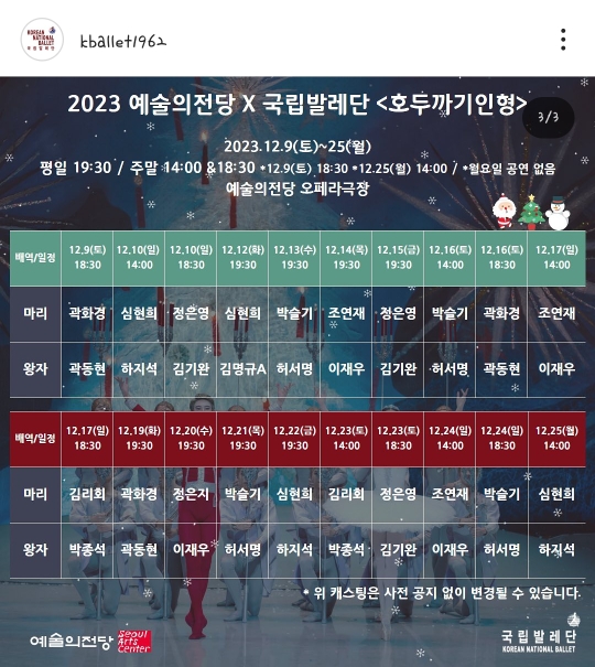 2023 예술의전당 & 국립발레단 <호두까기인형>의 캐스팅이 아래와 같이 변경되었습니다.