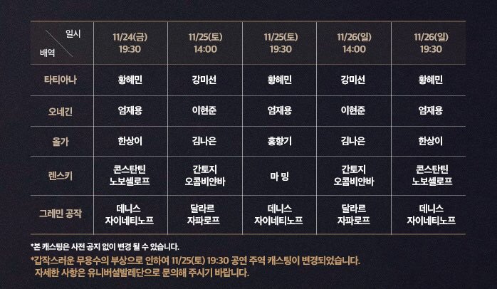11/20 캐스팅 변경